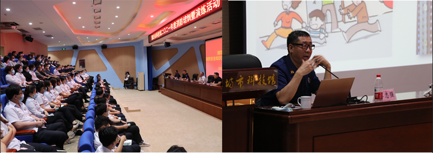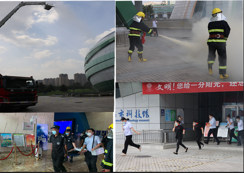 為保證濰坊市文化藝術中心各場館安全有效運行,扎實打牢濰坊市文化藝術服務中心安全基礎,提高各入駐單位、商鋪人人了解消防安全常識,加強各單位人員火災防范和應急處置能力,濰坊市科技館與濰坊市消防救援支隊及高新區消防救援大隊在濰坊市科技館聯合舉行了一次安全技能培訓及消防疏散演習。市科技館、昌大公管共計46人參加了消防演習。